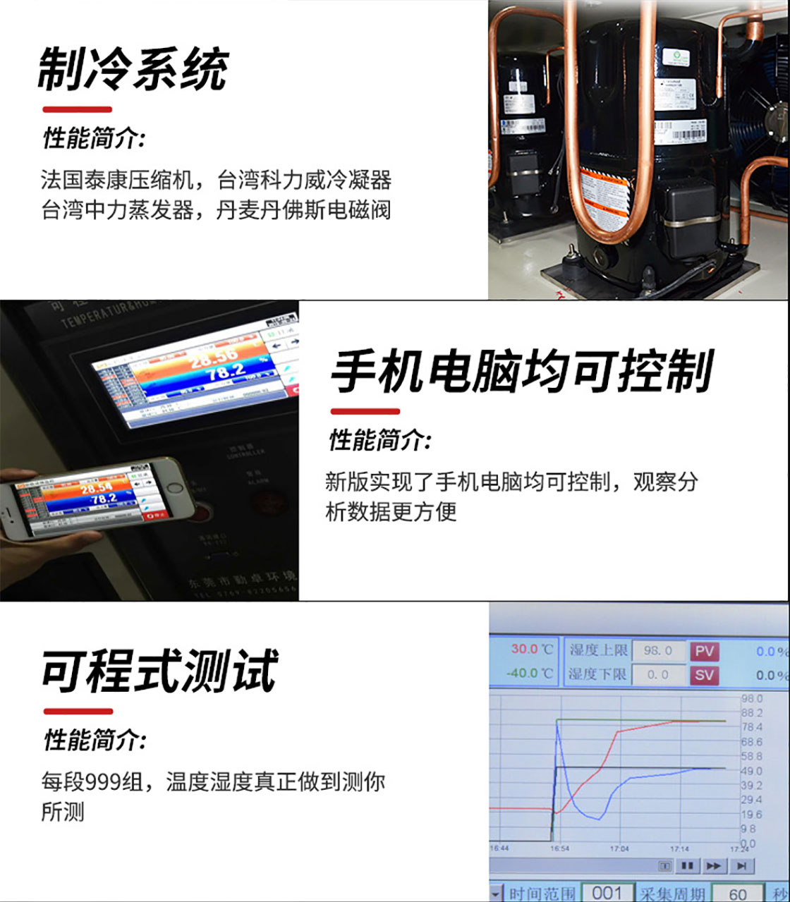高低溫試驗箱產品具有模擬大氣環境中溫度變化規律。主要針對于電工,電子產品,以及其元器件及其它材料在高溫,低溫綜合環境下運輸,使用時的適應性試驗。用于產品設計,改進,鑒定及檢驗等環節。