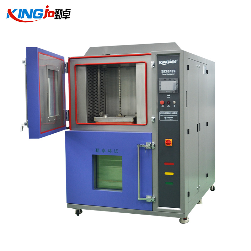 兩箱式冷熱沖擊試驗箱在高低溫室內切換轉移,采用吊籃移動式控制,轉換時間短符合國標要求,溫度恢復時間短,溫變速度快,設備整體結構緊湊,體積小,采用兩箱法,提高了工作室的溫度均勻性。