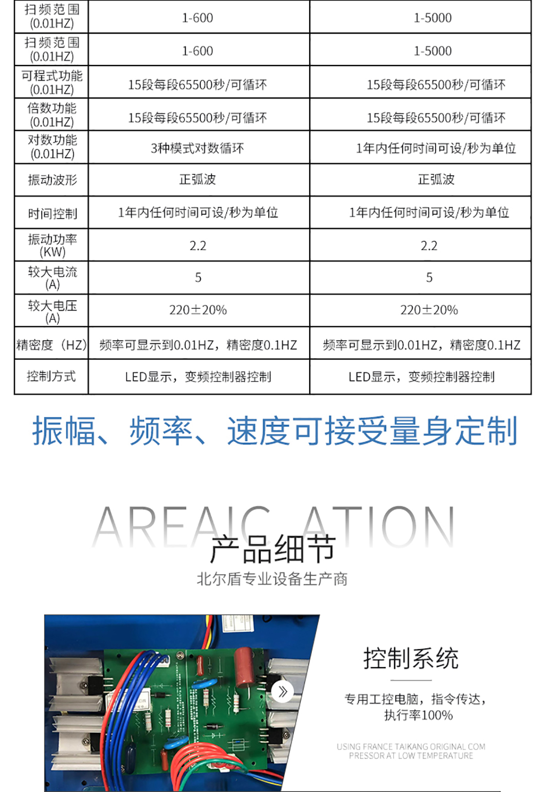 模擬實際工況考核和結(jié)構(gòu)強度試驗,產(chǎn)品應用范圍廣泛、適用面寬、試驗效果顯著、可靠。正弦波、調(diào)頻、掃頻、可程式、倍頻、對數(shù)、最大加速度,調(diào)幅,時間控制,全功能電腦控制,簡易定加速度/定振幅。設備通過連續(xù)無故障運轉(zhuǎn)3個月測試,性能穩(wěn)定,質(zhì)量可靠。
