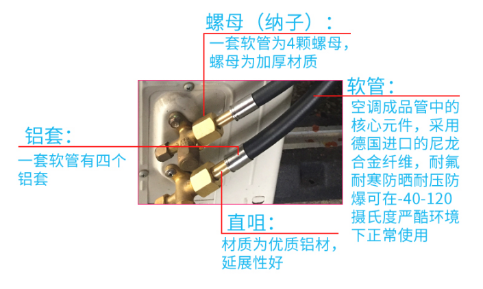 配件 | 提供直冷機至其他四臺環(huán)境箱設備的主管路(銅管或不銹鋼管),及進、出口連接軟管,總長度依據(jù)場地實際布局測量而定 (工作溫度-50℃-100℃)管徑定制,并且具備防老化、保溫功能 |
